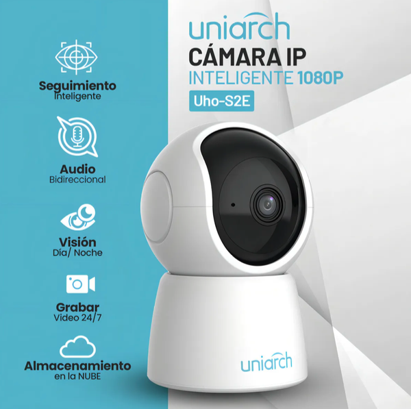 La cámara de seguridad Uho-S2E 2MP es una solución ideal para monitoreo en interiores, combinando tecnología inteligente y un diseño compacto. Con detección humana, visión nocturna y control remoto mediante la App Uniarch, ofrece seguridad accesible para hogares y pequeños negocios.